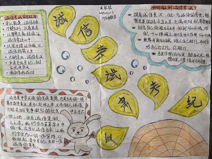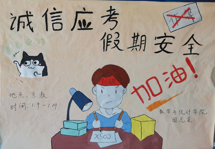 为了严肃考风考纪,树立良好学风,促进公平公正,加强诚信建设,数学与统计学院于2020年12月27日—2021年1月2日举办“诚信考试,严肃考纪”主题手抄报比赛。