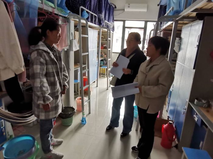 各宿舍同学对老师们的到来表示了热情欢迎。老师们向同学们了解宿舍生活情况,询问同学们日常生活中遇到的问题并给予了生活建议,同时对寝室卫生和大功率电器进行检查。检查之后,陈攀峰叮咛同学们一定要注意宿舍用电安全,禁止私拉电线,禁止晚归与夜不归宿,同时要注意定时通风,保持寝室的整洁。