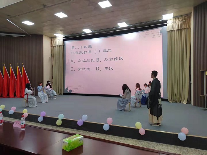 本次竞赛特色鲜明,主持人和选手们均着汉服,竞赛各环节中穿插着古筝、二胡、相声等中国文化艺术表演,整个过程都充满着民族特色,彰显着中国文化的魅力。中华优秀传统文化知识竞赛深化了广大师生对中华优秀传统文化的认识,增强了青年学子对中华优秀传统文化的传承使命,发挥着文化育人良好效果。