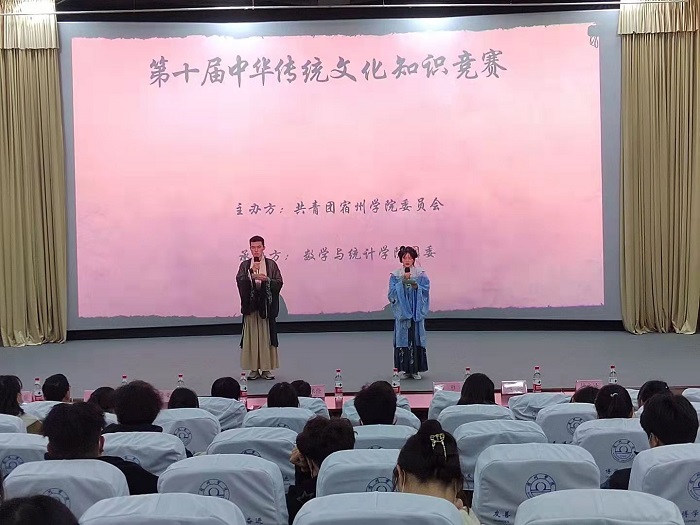 为继承和弘扬中华民族优秀传统文化和民族精神,提升广大青年学生的文化认同与文化自信,宿州学院于12月8日下午1:00在东教报告厅举行了第十届中华传统文化知识竞赛。本次比赛由共青团宿州学院委员会主办,数学与统计学院团委承办。