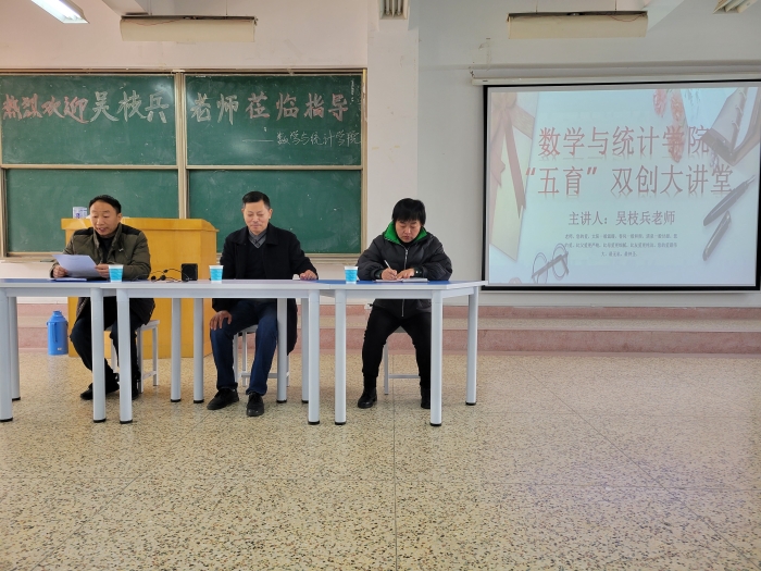 为提高师范生专业技能,增强职业竞争力,数学与统计学院于12月9日在教学楼b203举办“五育双创大讲堂”活动,邀请教育学专业吴枝兵老师对数学与应用数学师范生开展教师资格证考试指导。数统学院党委副书记陈攀峰(临时负责)、数统学院党委副书记徐依俭以及全体辅导员参加了本次讲座。