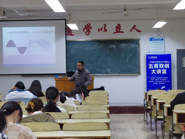为积极推动专业创新教育改革,落实双创教育与“五育”深度融合的育人目标,数学与统计学院依托宿州学院三月数学文化节活动平台,于3月24日下午4点在教学楼A103教室举办“五育双创大讲堂”数学学术讲座。