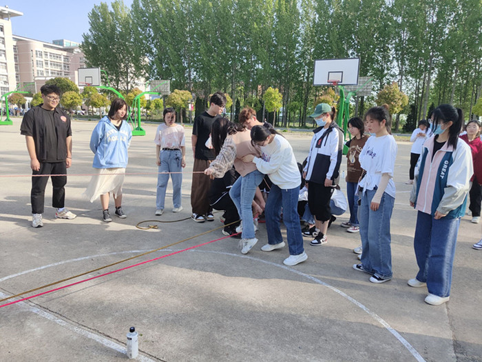 为进一步培养学生的创新创业意识,增强学生的团结协作能力,促进学生之间的沟通和交流,数学与统计学院于4月25日下午2:40在篮球场举办2022年第一期创新创业素质拓展训练活动。本期素质拓展活动由数统学院团委书记刘静带领。