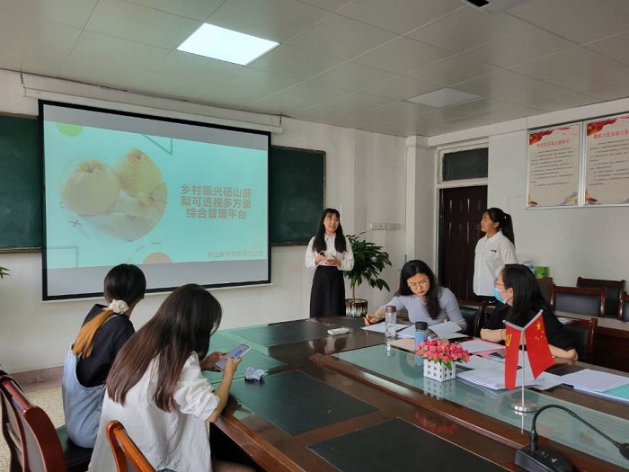 为深化高等教育综合改革,激发学生投身创新创业的热情,培养造就“大众创业、万众创新”的主力军。数统学院于2022年5月27日中午12:30在东教二楼会议室开展“互联网+”创新创业决赛。数统学院副院长李耀红,创新创业课授课教师刘静、周樊担任评委。