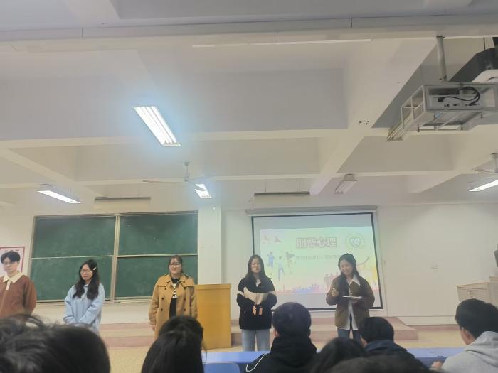 为进一步加强大学生心理健康教育,推进学院“朋辈心理互助”工作的开展,数学与统计学院朋辈心理辅导宣讲团于3月5日晚上7:00在教学楼B203举办“朋辈心理辅导”宣讲活动。数学与统计学院全体大一学生参与此次活动。