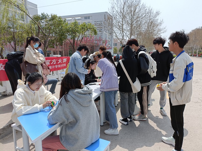 为锻炼同学们的专注力、空间想象力、记忆力、协调力,从而间接的提高同学们的数学思维能力。数统学院于3月14号中午12点在嘉言桥举行“玩转魔方”比赛,来自各学院60名同学积极参加本次比赛。