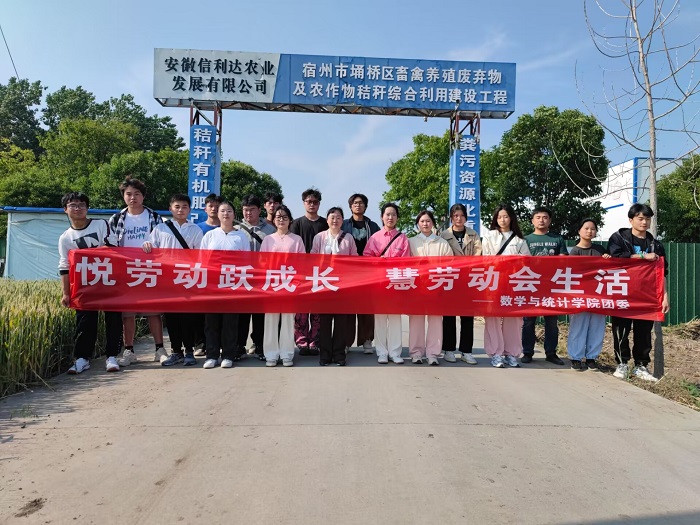 为增强青年学生的劳动意识和劳动素质,推进“五育”并举,数学与统计学院于5月13日下午组织学生干部赴劳动教育实践基地——宿州市信利达农业发展有限公司开展劳动教育实践活动。数统学院团委书记刘静带队,17名学生干部参加了此次活动。