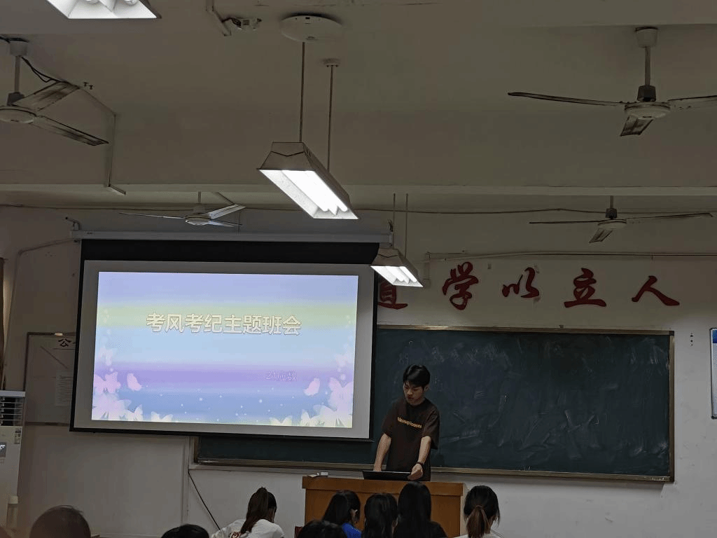 为扎实做好数统学院学风建设工作,临近期末,数学与统计学院以班级为单位,在辅导员的组织带领下召开考风考纪主题班会,会议在教学楼各教室分别进行。