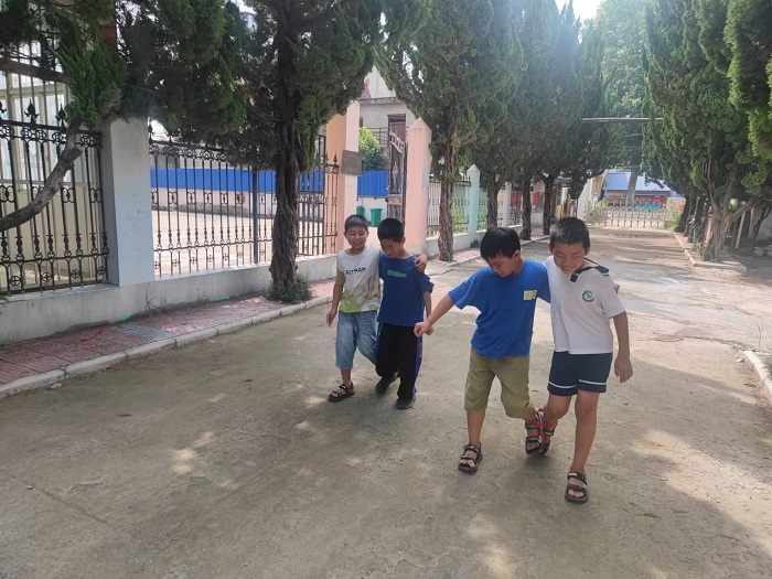 前期志愿服务团做足了功课,针对不同年级的留守儿童进行了分班,并以“德智体美劳”全面发展的理念为指导,精心设计课程,做到“五育并举,五育融合”。19日清晨,志愿者们迎来了32位桥头小学的同学们。为了尽快拉近心灵距离,志愿者们以素质拓展活动作为第一个教学环节。“三人两足”锻炼了孩子们的协调力,“摸石头过河”培养了孩子们的毅力,“无敌风火轮”激活了孩子们的团队协作力。一系列的拓展游戏,让这些留守儿童绽放出灿烂的笑脸,欢快的笑声响彻在安静许久的校园上空。