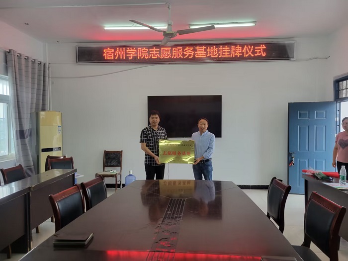 为巩固社会实践成果,推动大学生积极投身乡村建设,以青春之我融入社会实践热潮,2023年8月28日数统学院党委副书记徐依俭、分团委书记刘静、学生事务科科长钟文峰赴灵璧县桥头小学看望在该校开展暑期“三下乡”社会实践活动的学生,并与该校签订志愿服务基地,举行了授牌仪式。