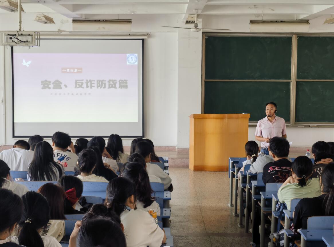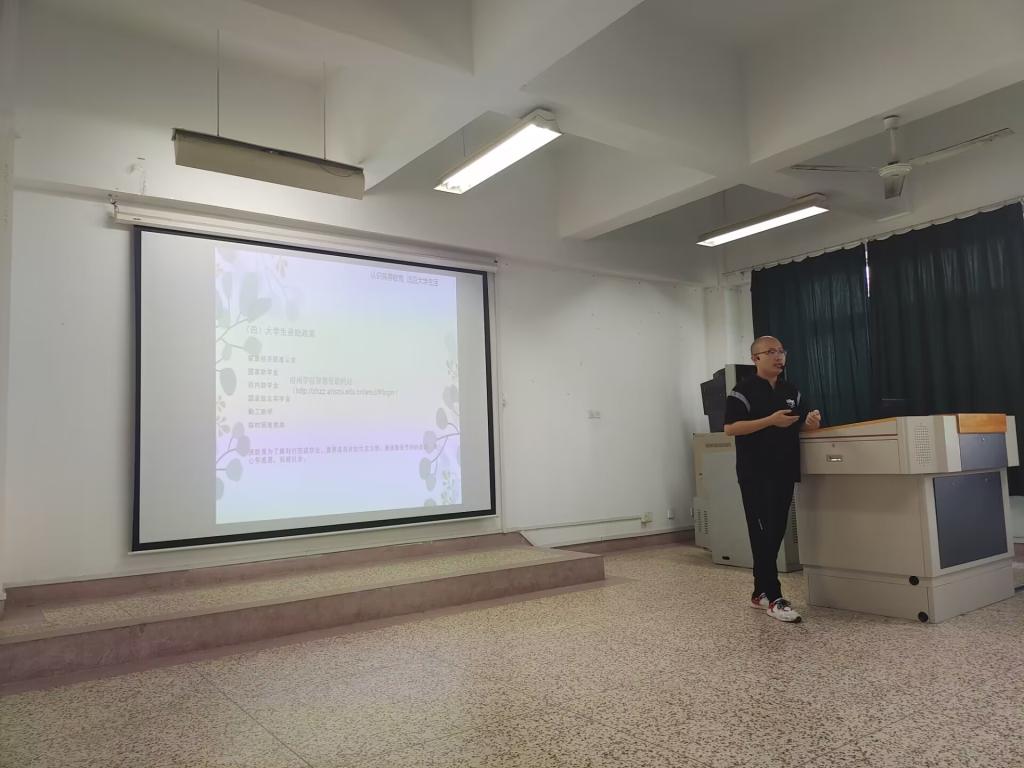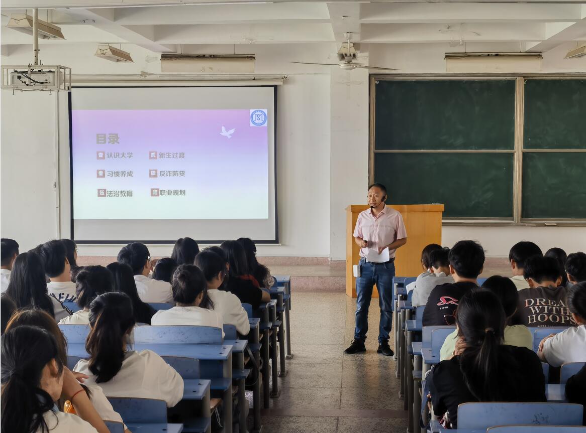入学教育第三个环节认识大学生活,由数统学院党委副书记徐依俭通过毛泽东、周恩来等老一辈革命家青年学生时代的伟大事迹,引导学生树立远大的理想,为社会主义事业努力奋斗。接着,徐依俭又给大家讲了防范校园电信诈骗的相关知识,叮嘱大家不要刷单、不要参与网络赌博,不要外借或出售银行卡、电话卡。理论宣讲结束后,数统学院“暑假归来话职场”汇报团队的五名同学依次上台,从暑期兼职、入伍经历、职业规划等几个方面更直观的向新生展示了自己在大学期间的美好经历。