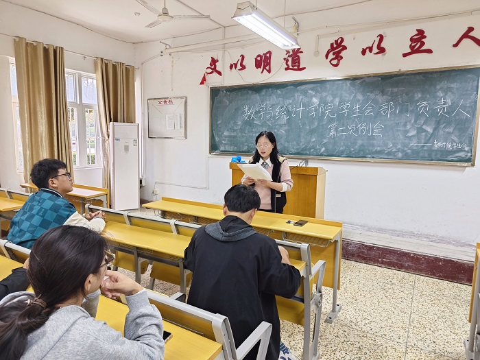 为了加强学生干部思想政治素养,更好的开展学生会的工作。10月23日中午12:30,数统学院在东教学楼A103教室举办第二次学生会部门负责人例会,出席本次例会有分团委书记刘静,学生会主席团,团副及各部门负责人。