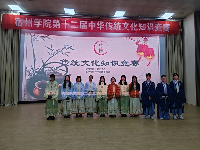 为传承中华优秀传统文化,提高学生的道德文化修养与综合素质,丰富学生的文化内涵,深入推进校园文化建设,2023年11月22日晚上18:30宿州学院第十二届中华传统文化知识竞赛在大学生活动中心隆重举行。本次比赛由共青团宿州学院委员会主办,数学与统计学院团委承办。