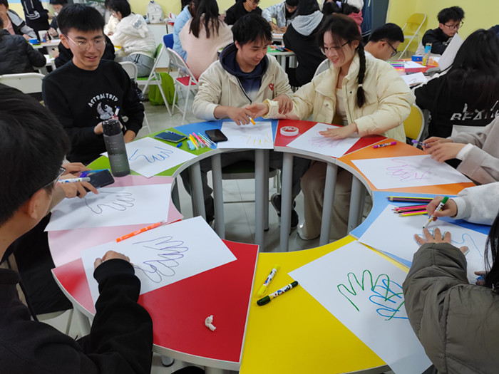 绘画心理表达旨在让绘画者透过绘画的创作过程,运用非语言工具,将混乱的的感受转变为清晰、稳定的状态,将潜意识内压抑的矛盾与冲突呈现出来,并且在绘画的过程中获得释放与满足。本次活动是数统学院心理健康教育月系列活动之一,今后学院还将继续针对学生的不同需求分层次打造结构化和非结构化的团体辅导,创新团体辅导活动的形式,不断提高心理服务覆盖面。