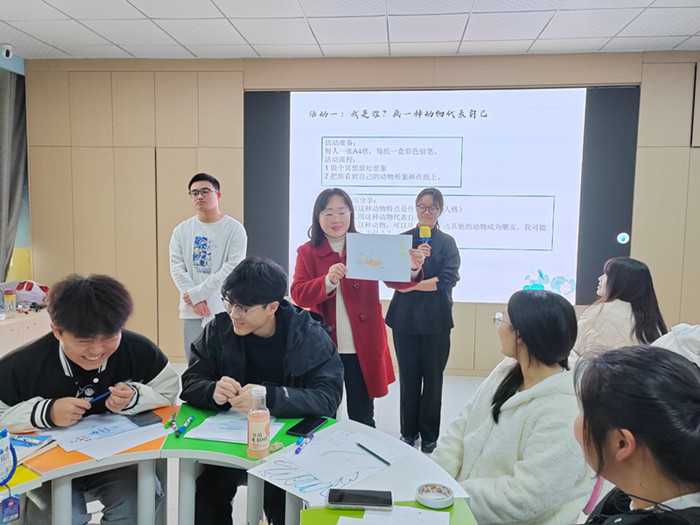 为了提升大学生心理健康素质,增强师范生心理职业素质,2023年11月24日下午,数学与统计学院在实训楼团体活动室举办了以“一画一世界,一笔一修行”为主题的绘画团体心理辅导活动,本次活动由心理辅导员刘静带领,22应数50名师范生参加。