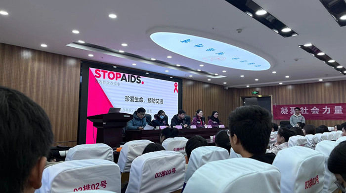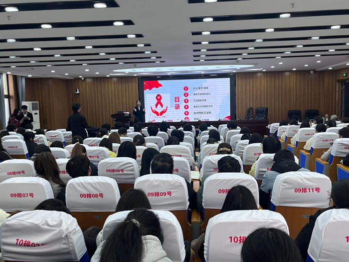 为培养学生艾滋病预防意识,引导学生树立文明健康生活理念和方式。宿州学院联合宿州市疾病控制中心、埇桥区疾病控制中心于2023年12月6日下午举办了“珍爱生命,预防艾滋”主题宣传活动。宿州学院数学与统计学院和商学院共同承办了本次活动。出席活动的有宿州学院后勤与基建管理处处长杨文艺、副处长孙继军,商学院党委书记肖良、数学与统计学院党委副书记徐依俭、宿州市疾控中心性病艾滋病防治科科长赵辉、埇桥区疾控中心性病艾滋病防治科科长曹磊等。活动分为主题讲座和线下宣传两个部分。