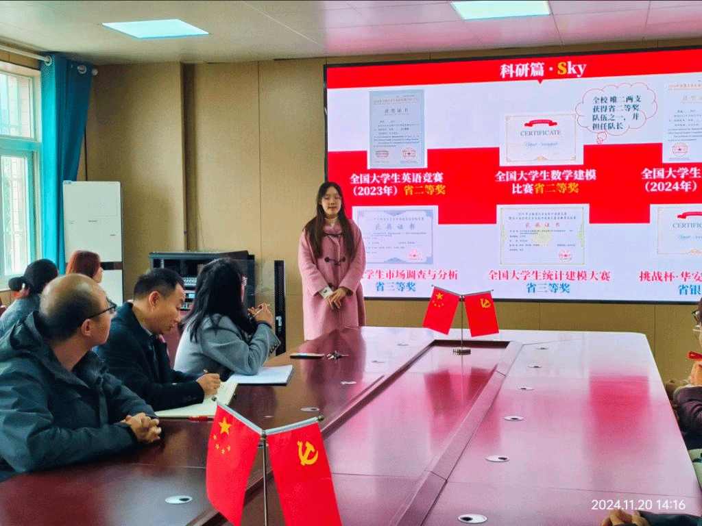 为树立大学生先进典型、加强思想政治引领,激励、引导广大青年大学生不忘初心、奋发进取。11月20日下午,数学与统计学院在教学楼会议室举办“宿州学院十佳大学生”评选推荐会。会议由数统学院党委副书记徐依俭主持,数统学院学生事务管理科科长钟文峰、辅导员王琦和部分学生代表参会。