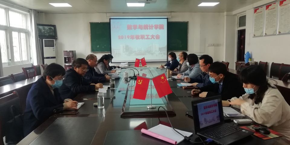 4月8日下午,数学与统计学院在数统学院会议室召开了2019年教职工大会。院领导、党总支委员、科级干部、教师党支部书记、分工会主席参加会议,会议由党总支书记李刚主持。为疫情联防联控工作,此次会议采用线上线下相结合的方式进行,其余教职工通过钉钉会议同步参加。