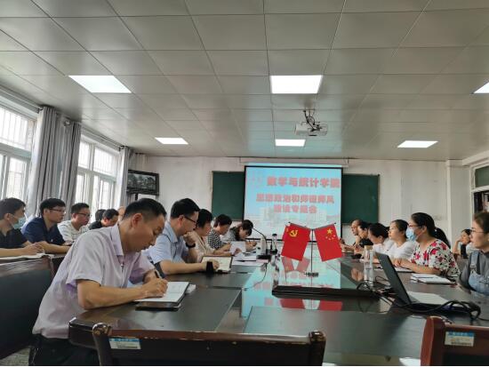 为更好的深入开展数统学院师德师风建设,培养新时代四有好老师,9月15日下午,数学与统计学院在二楼会议室召开了思想政治和师德师风建设专题会。全体教职工参加会议,会议由党委副书记陈攀峰(临时负责)主持。