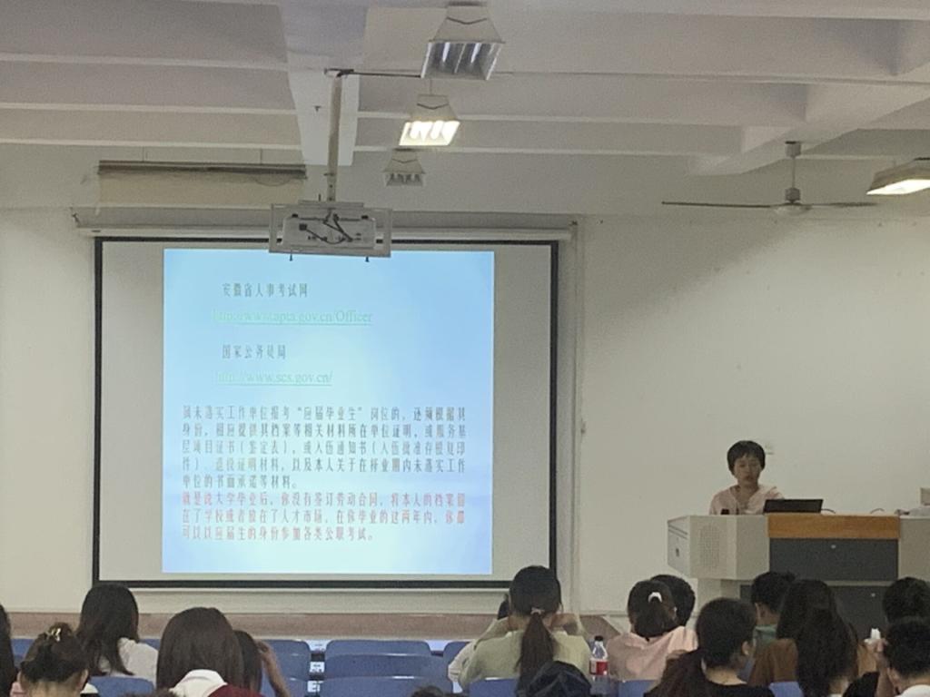 会议第二项由徐依俭上台发言为同学们讲授就业安全知识,他结合身边案例强调人身安全和信息安全的重要性,有效提升同学们的安全防范意识。动员会最后,钟文峰上台补充说明“网签”相关操作。