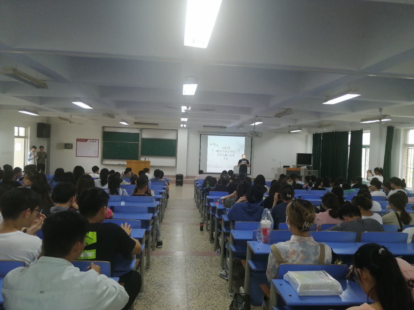为做好2022届毕业生就业工作,帮助毕业生树立正确的就业观和择业观,同时提高学生择业时的安全意识,数学与统计学院于9月28日下午13:00在东教b203教室举行毕业生就业动员大会。会议由学院分团委副书记钟文峰主持,院党委副书记陈攀峰(临时负责),党委副书记徐依俭,院分团委书记刘静出席本次大会。