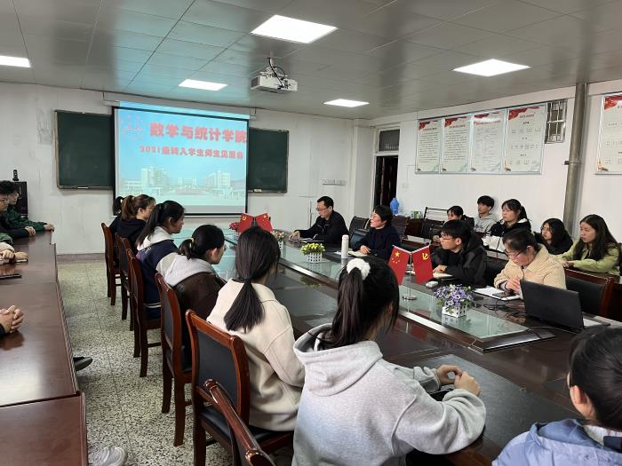 徐秀荣首先对新转入学生表示祝贺和欢迎,并简要介绍了数学与统计学院的师资队伍、专业建设及人才培养的现状。她指出,数统学院办学历史悠久,师资队伍雄厚,学科优势明显,教风学风良好。强调学院将为同学们的学习提供全方位的服务和帮助,希望同学们调整好学习生活节奏,积极投入新的学习任务,做好时间规划,尽快融入新集体。随后,李耀红简要概况了数学类课程的学习方法和技巧,希望同学们正确对待转专业后所遇到的问题与困难,及时调整转心态,鼓励同学们以积极向上的态度投入到新学期的学习与生活中,热爱并学好自己心仪的专业,积极主动融入新的班集体,争取获得更多的成长与进步。