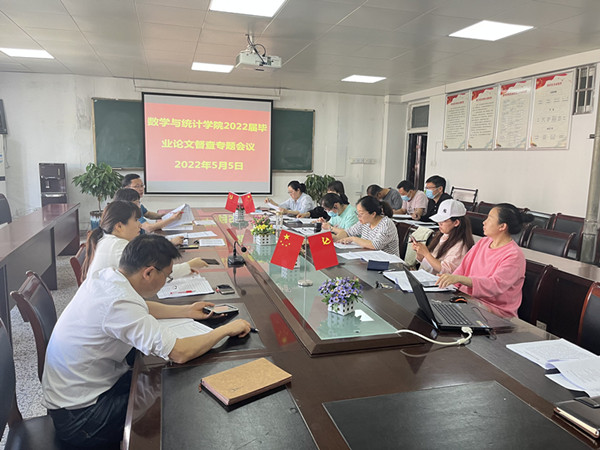 根据活动安排,首先集中审核了数学与统计学院2022届本科生毕业论文答辩工作方案,重点查看了答辩流程和答辩要求,并对答辩过程中的一些细节问题进行了交流讨论;然后以教研室为单位在“大学生毕业设计(论文)管理系统”中查看了论文指导教师的指导工作及相关指导记录,并分专业随机下载了一定比例的学生的论文进行重点检查,对论文内容、格式等方面存在的问题进行了讨论,并达成了统一的修订意见。