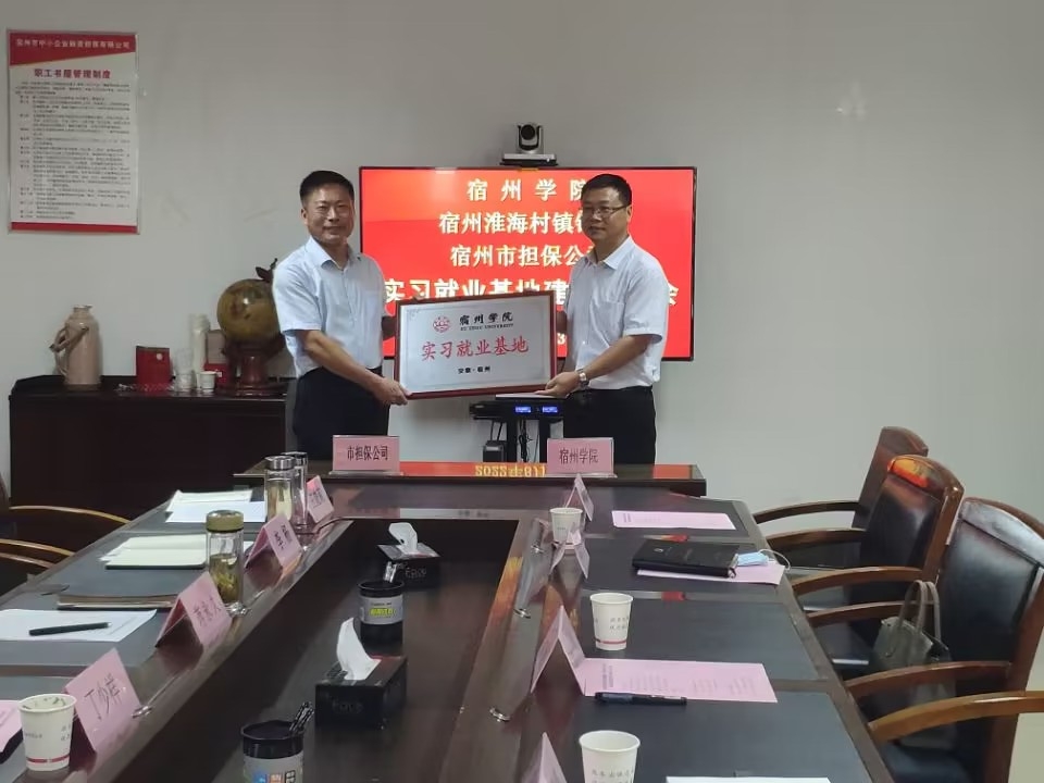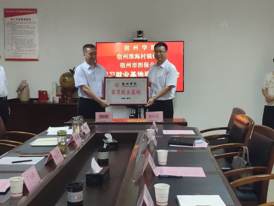 随后,陈攀峰代表数学与统计学院分别于两家单位签订了实习就业合作协议,王俊代表学校与两家单位举行“宿州学院实习就业基地”授牌仪式。