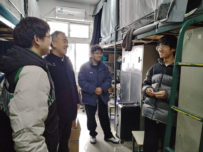 12月12日,校党委副书记、校长闵杰深入宿舍走访慰问,为同学们送去温暖和关怀,并倾听学生心声。