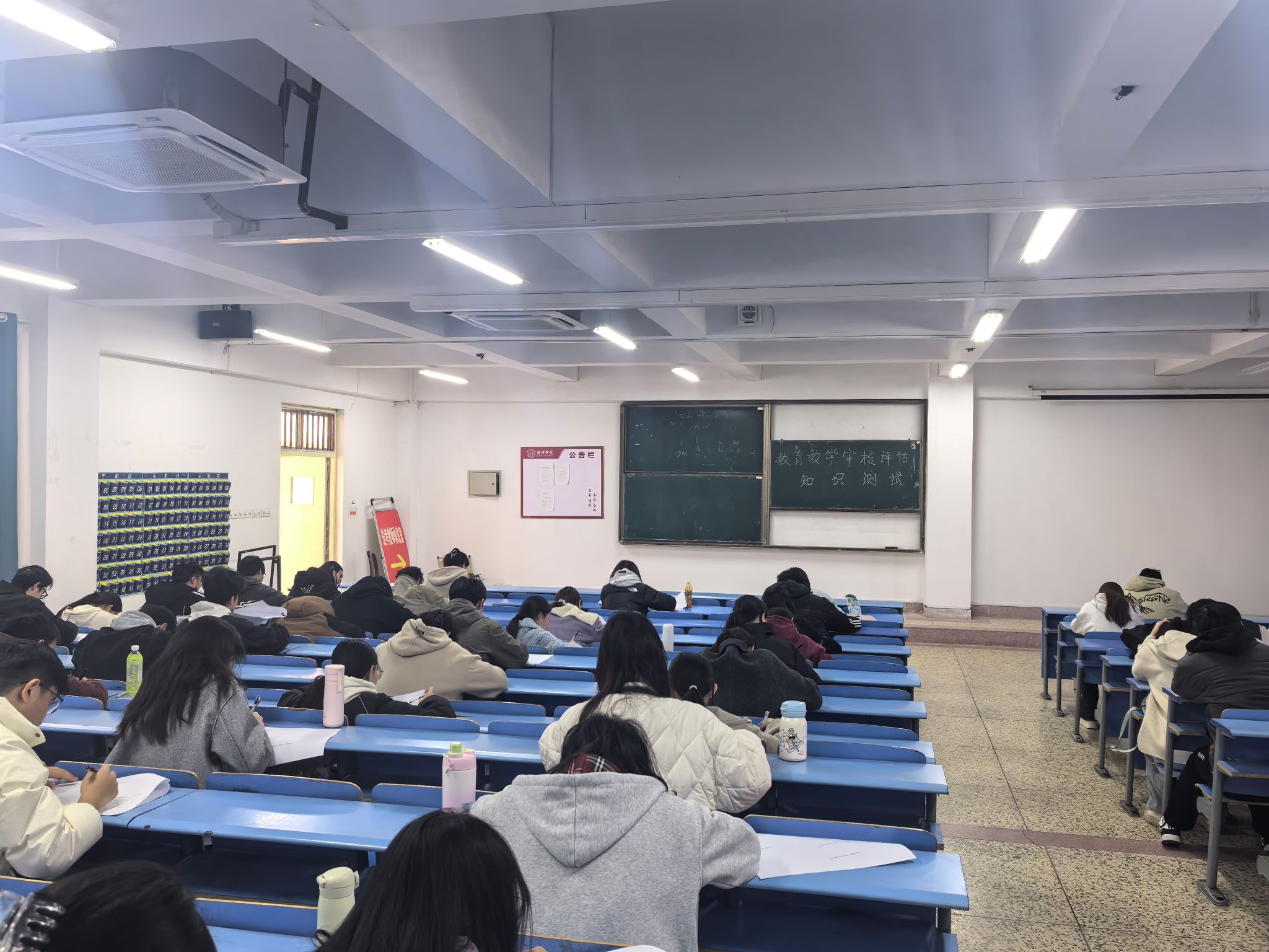 2025年3月19日下午,数学与统计学院在教学楼B103组织本科教育教学审核评估知识测试活动,学院百余名同学参加。