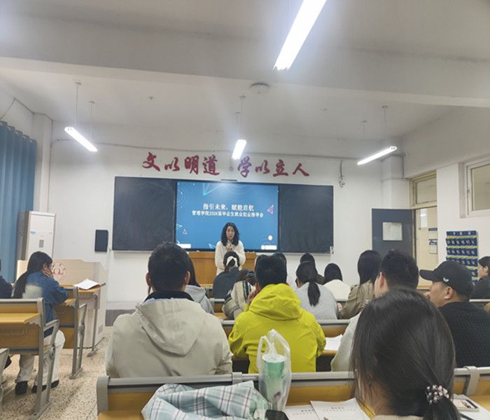 会上,赵丽莎对就业三方协议、就业推荐表的核心作用与注意事项进行了讲解,对学校就业服务内容、就业信息系统使用和就业服务方式、载体、渠道等进行了介绍。围绕“就业形势怎么看”、“就业信息如何找”、“简历面试如何做”等方面进行了深入浅出的讲解。通过生动详实的案例,为同学们厘清职业规划的思路,剖析优秀简历的核心要素与面试技巧,使同学们对求职实操环节有更深刻的理解与认识。指出毕业生要从“认知、能力、行动”三个维度同步发力,理性定位明确“职业锚点”,聚焦“专业能力、实践能力、综合能力”持续提升,积极走出去、历练求职本领与技巧。