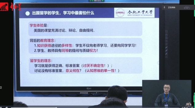 张洪老师报告的题目是:教学要素内涵与教学创新设计。张老师主要从对教学创新的认识进行阐述,对为什么要进行创新以及如何创新做了说明,并给出教学创新的九种方法、二十七种策略,为面向未来的教学创新指明了十个方向。