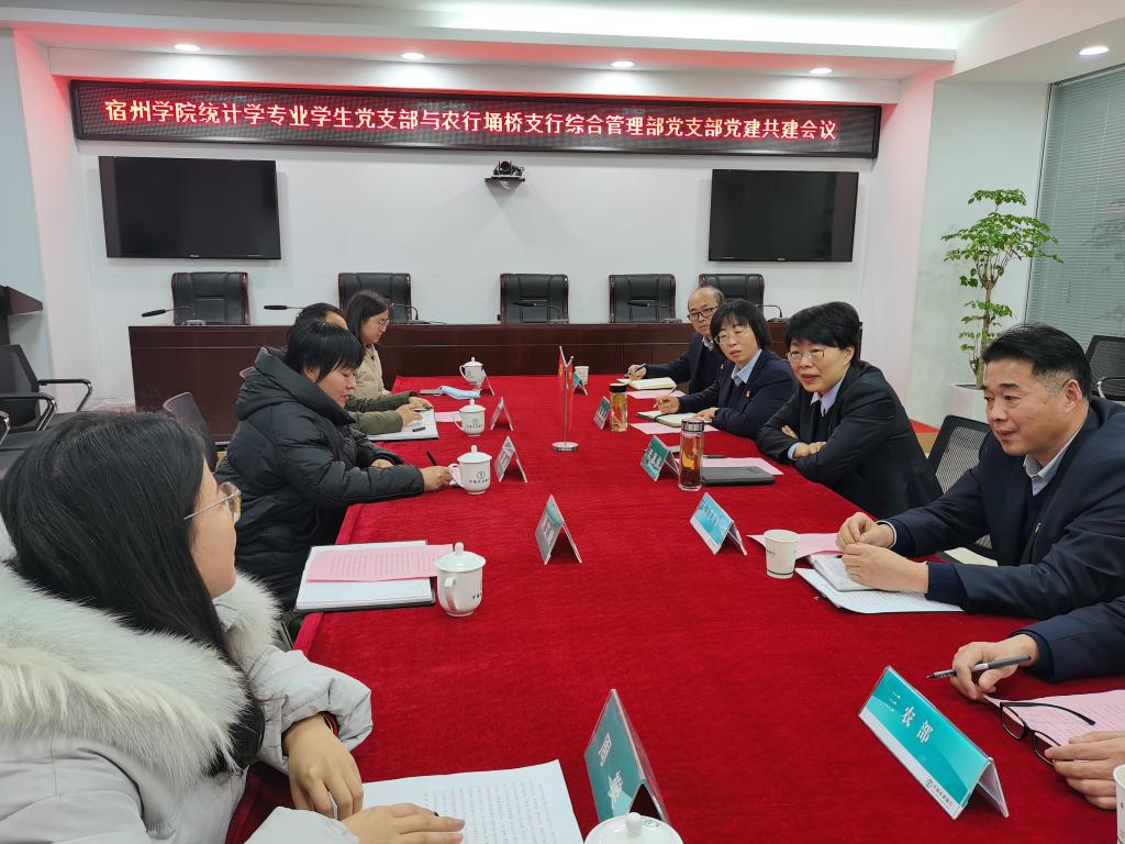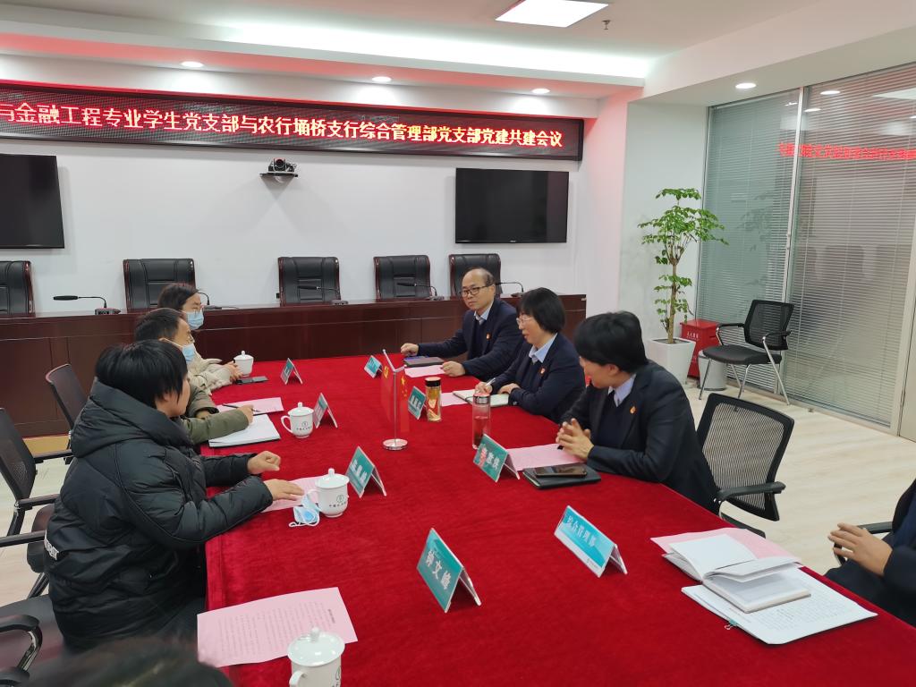 为进一步发挥党支部战斗堡垒作用,提升支部服务水平,给师生提供更多的资源,12月20日下午,数学与统计学院党委副书记陈攀峰(临时负责)、党委副书记徐依俭、学生事务管理科副科长钟文峰、统计学专业学生党支部书记高雅、数学与金融工程专业学生党支部书记周樊一行五人前往中国农业银行宿州分行埇桥支行开展党支部共建交流工作。农行埇桥支行党委书记、行长李惠侠及领导班子成员热情接待并参与本次交流。