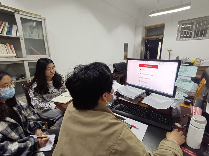 首先,陈攀峰强调了本次党务知识培训的必要性和重要性。随后,带领学生党支部书记,登入共产党员网—支部生活—党务知识,共同学习入党流程和发展党员工作手册。陈攀峰通过讲述与问答相结合的形式,引导两位学生党支部书记再次回顾申请入党、入党积极分子的确定培养教育、发展对象的确定和考察、预备党员的接收以及预备党员的教育考察和转正等方面的党务知识。
