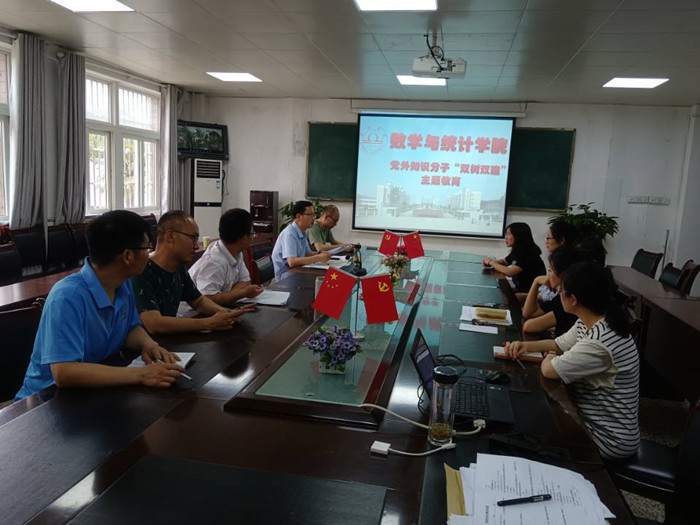 5月25日,数学与统计学院在教学楼二楼会议室召开党外知识分子“双树双建”主题教育活动。会议由副院长(教学)、统战委员李耀红主持,组织委员梁武以及党外知识分子参加。