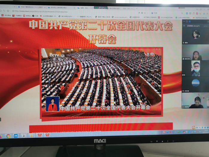 中国共产党第二十次全国代表大会于10月16日上午10时在北京大会堂隆重开幕。统计与金融教研室教师党支部全体成员满怀热情,通过腾讯会议形式集中观看了开幕会,认真听取了习近平总书记代表第十九届中央委员会向大会作的报告。