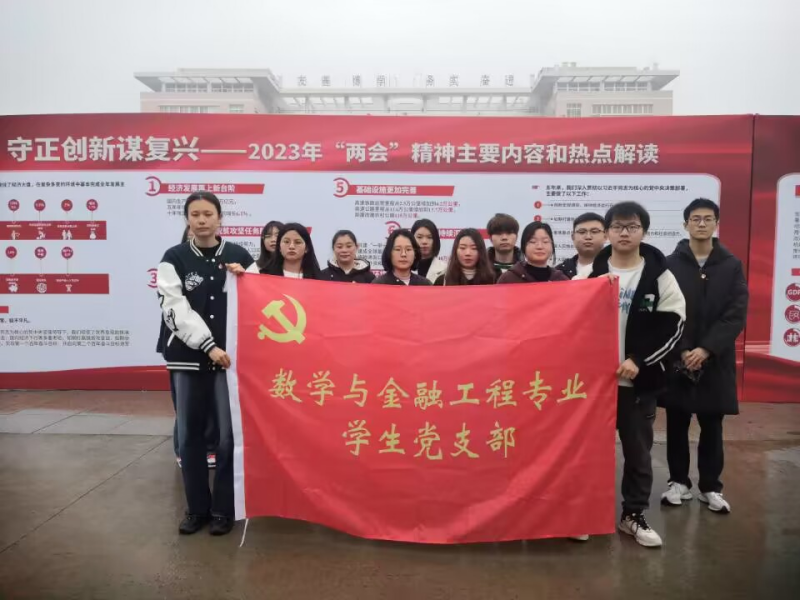 为进一步忠诚捍卫“两个确立”,坚决做到“两个维护”,教育引导学生党员把学习贯彻全国两会精神与学习贯彻党的二十大精神相结合。2023年3月22日下午,数学与金融工程专业学生党支部组织带领学生党员参观“团结奋斗建强国 守正创新谋复兴--2023年两会精神主要内容和热点解读”展览。