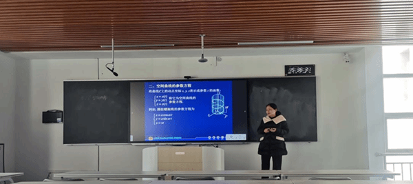 为进一步提升公共数学课程教学质量,促进教师教学经验交流,公共数学教研室于3月19日组织开展“高等数学”教学示范课活动。本次示范课由公共数学教研室单雪红教师老师主讲,公共数学教研室全体教师参与观摩学习。示范课主要围绕《高等数学B(二)》中《空间曲线》展开教学。