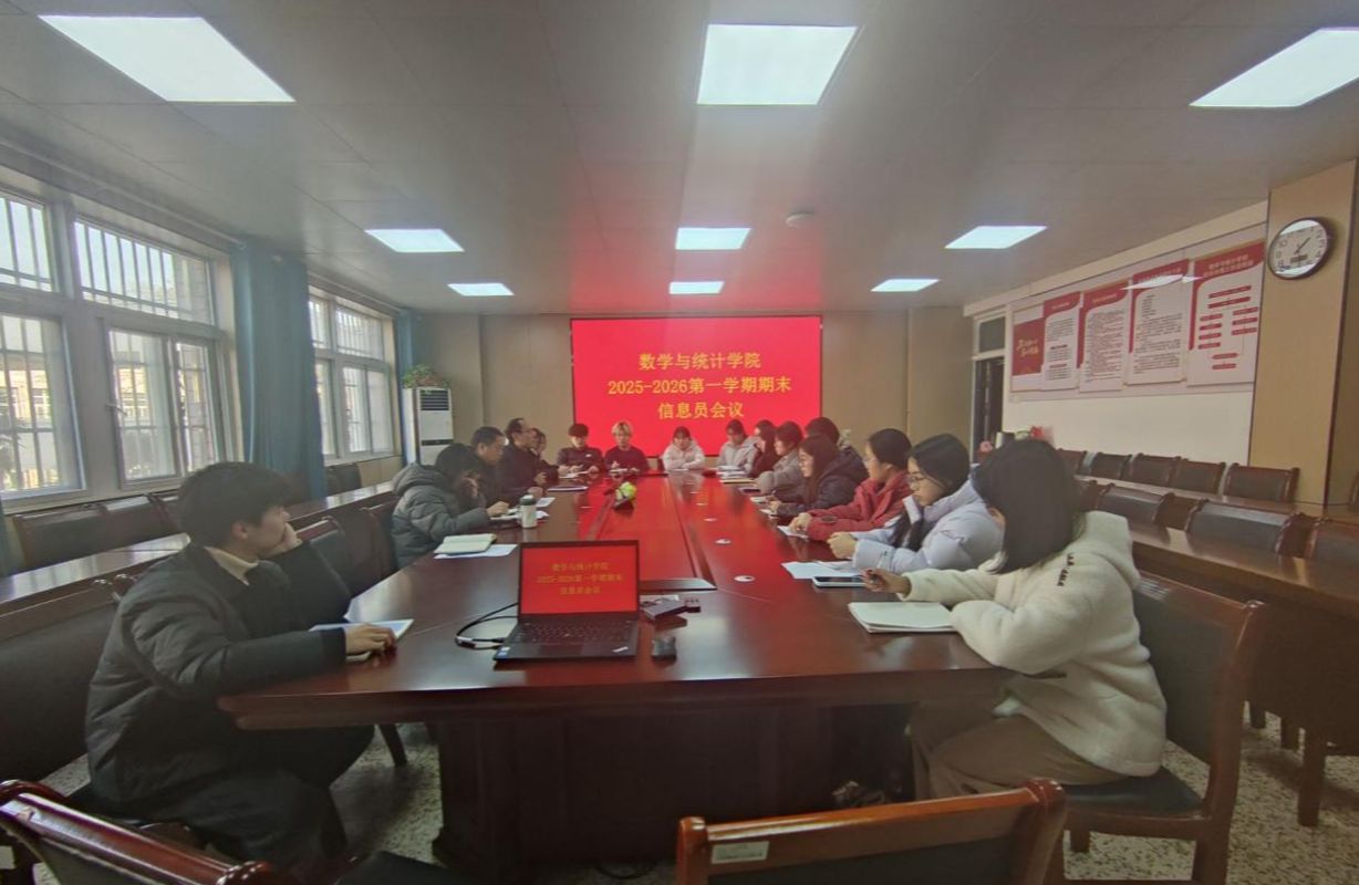 1月6日下午,数学与统计学院在学院会议室组织召开了2025-2026学年度第一学期期末教学信息员会议。院长林永,副院长段鹏举,教务管理人员赵静、井迎,学院校级信息员以及各班信息员参会,段鹏举主持会议。